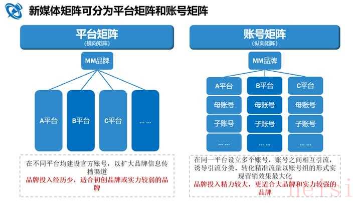 品牌需結(jié)合目標(biāo)客群匹配度、內(nèi)容形式適配性、行業(yè)成功案例等因素,選擇 3-5 個(gè)核心平臺構(gòu)建矩陣,初創(chuàng)品牌可聚焦 1-2 個(gè)平臺集中突破。四、設(shè)計(jì)矩陣架構(gòu)與內(nèi)容:實(shí)現(xiàn)協(xié)同增效平臺確定后,需規(guī)劃矩陣類型與賬號內(nèi)容,形成 “各有分工、相互賦能” 的傳播網(wǎng)絡(luò)。矩陣類型分為橫向與縱向兩種。橫向矩陣(平臺矩陣)指在不同平臺設(shè)立官方賬號,擴(kuò)大信息傳播渠道,投入較少,適合初創(chuàng)品牌或?qū)嵙^弱的品牌;縱向矩陣(賬號矩陣)指在同一平臺設(shè)立多個(gè)賬號,形成 “母賬號 + 子賬號” 體系,賬號間相互引流、精準(zhǔn)轉(zhuǎn)化,投入較大,更適合大品牌。以小米為例,其縱向矩陣包含品牌主賬號(小米公司)、業(yè)務(wù)賬號(小米手機(jī)、小米汽車)、個(gè)人權(quán)威賬號(雷軍、盧偉冰)、員工賬號(小米員工的日常)、區(qū)域賬號(小米江蘇、小米北京)等,實(shí)現(xiàn)用戶全方位覆蓋。