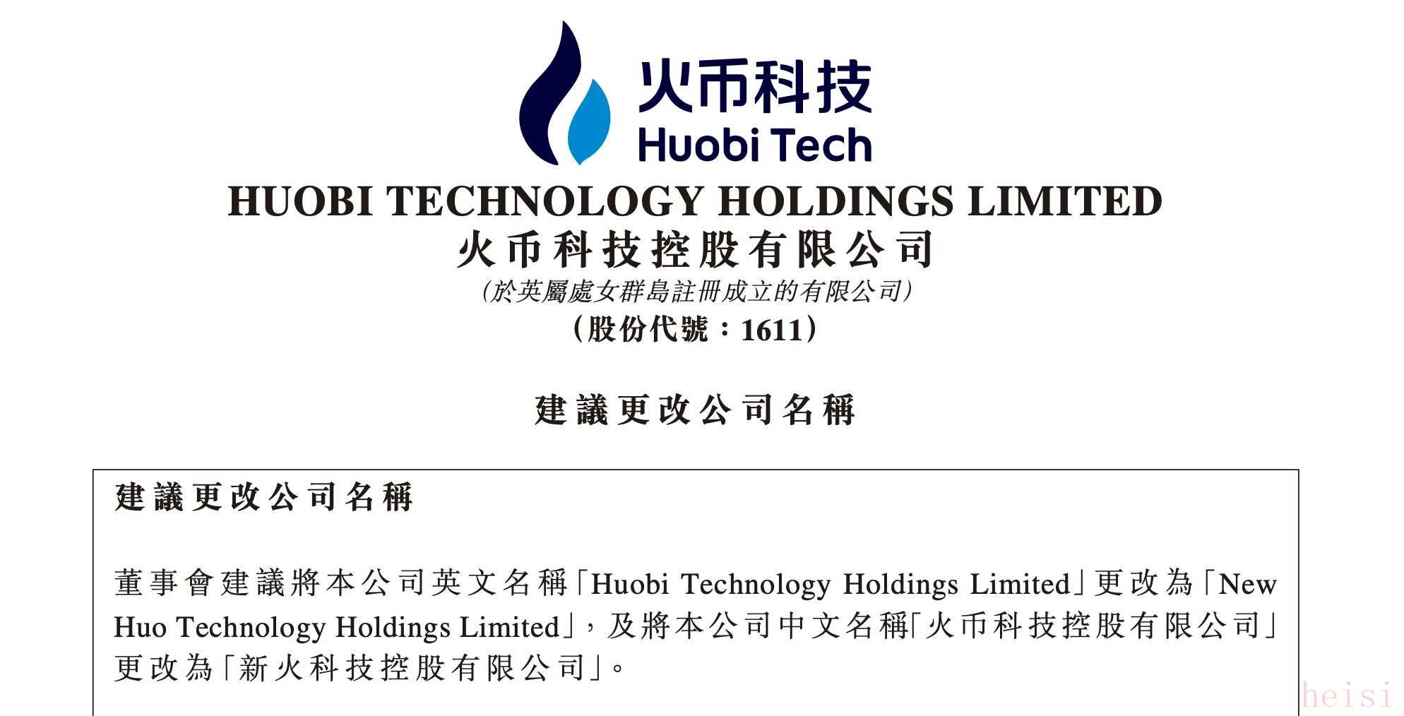 其中文名稱“火幣科技控股有限公司”將更改為“新火科技控股有限公司”,英文名稱“Huobi Technology Holdings Limited”改為“New Huo Technology Holdings Limited”。