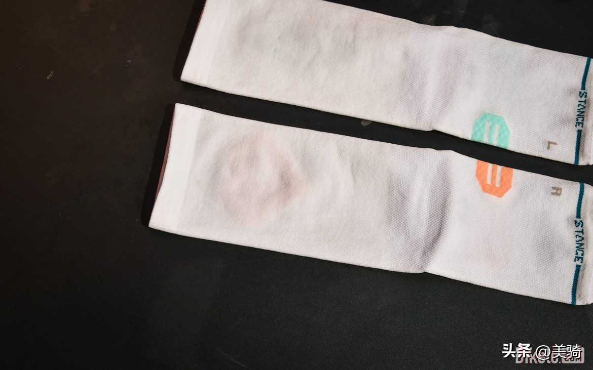 ▲請?jiān)徯【幫祽?,只拍了“PRO騎行襪”的圖讓我們從入門級的“專業(yè)騎行襪”講起。雖然說是STANCE騎行系列的入門級產(chǎn)品,但售價(jià)也高達(dá)138元,所以小編對它的期待也比較高。由于襪筒使用了畢竟常規(guī)的配置,“專業(yè)騎行襪”的穿脫還是比較輕松的。襪腳的面料屬于是比較薄那種,透氣性能不錯(cuò),非常適合夏季穿。襪子面料的舒適度也非常好。之前,小編穿過的騎行襪里,個(gè)人認(rèn)為面料最舒服的是閃電的SOFT AIR,試穿過STANCE這款襪子后,小編可以說它就是我穿過面料最舒服的襪子了。