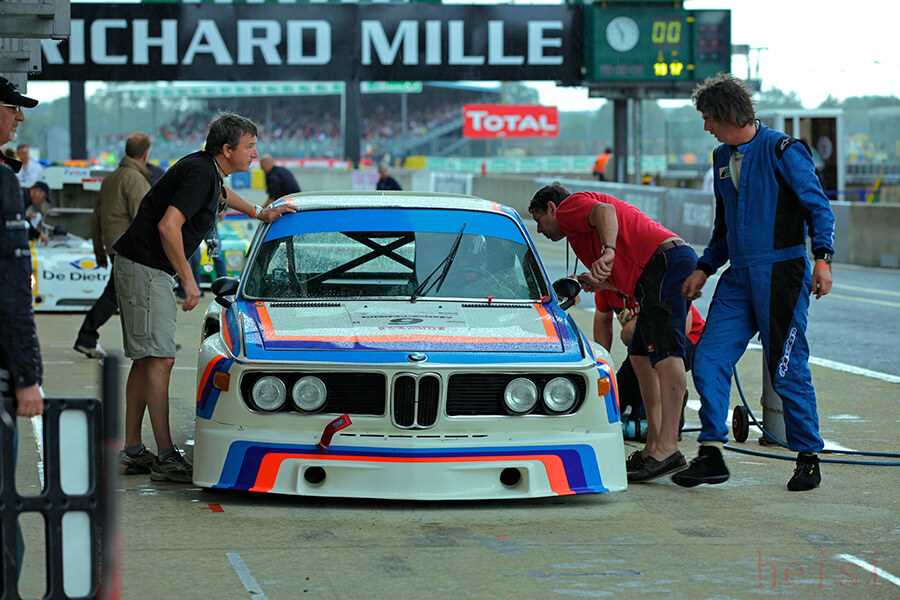 第一部M部門制作的廠車是3.0 CSL(E9),首次采用藍紫紅三色間條設計,也是第一部寶馬M賽車。此車投入國際賽事取得相當不錯的成績,于1973至1979年六度取得歐洲房車錦標賽年度冠軍,并多次在耐力賽奪冠。包括Sebring 12 hours(1975年)、Daytona 24 hours(1976年),以及三次取得勒芒大賽分組勝利(1973年、1974年、1977年)。