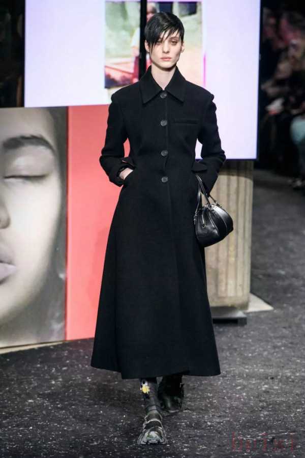 身穿MaxMara2019秋冬純黑色大衣,全黑色系的簡約穿搭盡顯高級質(zhì)感。