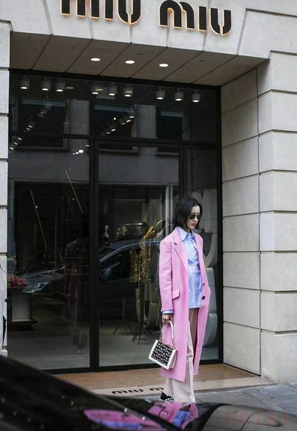 杜鵑一身長粉色大衣搭配藍(lán)色襯衫的撞色效果,搭配米色長褲,不僅能打破單色的沉悶,整體造型活力又隨性,十分搶眼。