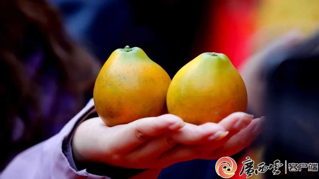 在柳州市融安縣第十五屆金桔文化旅游節(jié)中,兩個(gè)有“王者風(fēng)范”的大金桔。通訊員 覃慶和 攝