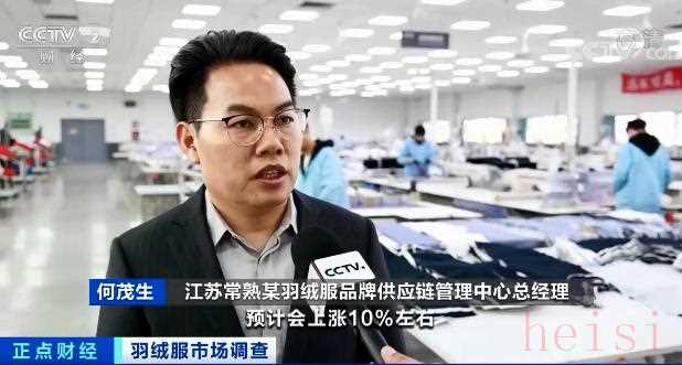 江蘇常熟某羽絨服品牌供應鏈管理中心總經(jīng)理 何茂生:我們整體的成本預計會上漲10%左右,我們用的是期貨加現(xiàn)貨雙模式的方法進行生產(chǎn),現(xiàn)在可以實現(xiàn)一周下單,也就是說周一下單,在下周左右就可以把最需要的產(chǎn)品補到市場上去。