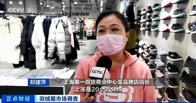 上海第一百貨商業(yè)中心某品牌店店長 祁建萍:今年羽絨服相比去年銷售挺旺的,上漲20個百分點,顧客對羽絨服的要求也有,需求也有,價格在600元到2000元之間是賣得比較好的。