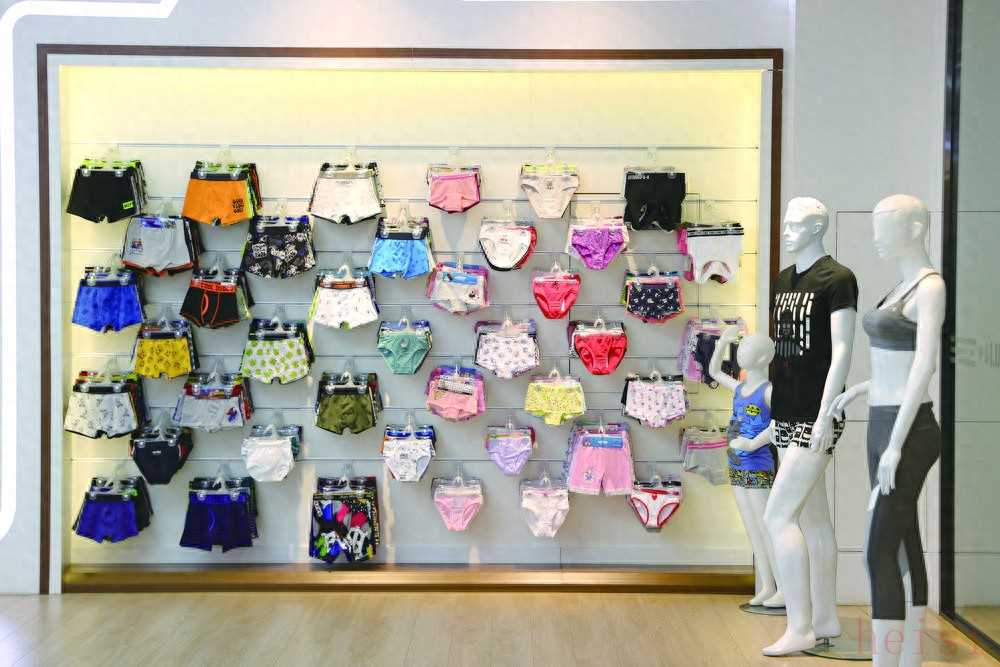 在深滬鎮(zhèn)黃河服裝織造公司的展廳,貨架上不僅有傳統(tǒng)的內(nèi)褲,還有設(shè)計時尚的瑜伽服和泳裝。