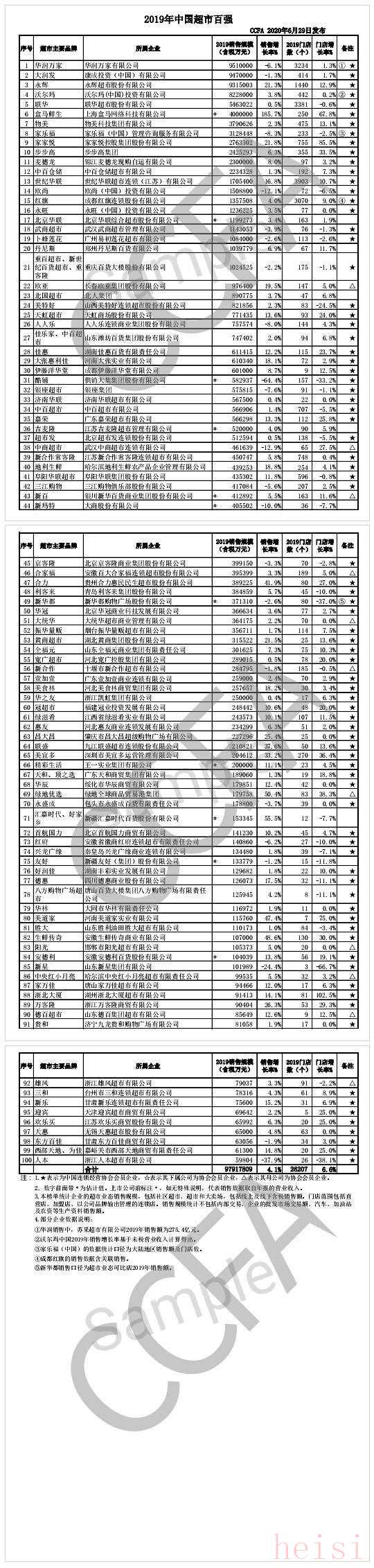 近日,中國連鎖經(jīng)營協(xié)會發(fā)布2019中國超市百強榜單,華潤萬家、大潤發(fā)、永輝奪得三甲,河南知名連鎖零售企業(yè),丹尼斯2019銷售規(guī)模(含稅)103.9779億元排第20位,大張惠利佳61.034億元排第29位。