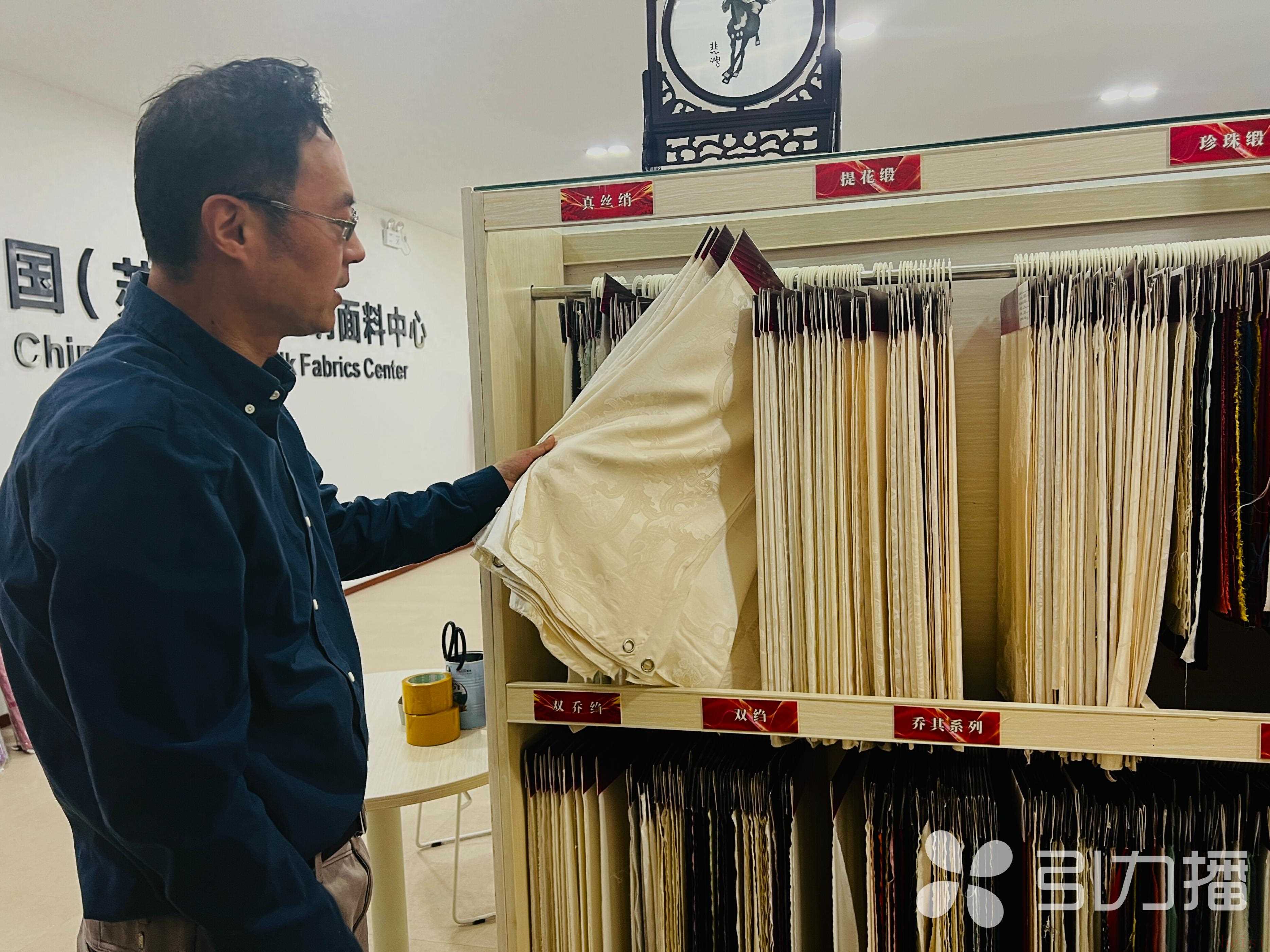 潘納新手持真絲面料講解其特色 蘇報(bào)融媒記者 朱亞蕾/攝今天(4月14日),記者走進(jìn)中國(蘇州)真絲綢面料中心展廳,展示架上層層疊疊垂掛著流光溢彩的面料。該中心負(fù)責(zé)人、鴻成絲綢總經(jīng)理潘納新正手持一卷暗紋正絹面料向采購商講解:“這款面料原先是出口日本的,主要用于和服制作。這種暗紋的花樣低調(diào)又精致,適合做成通勤漢服,可以搭配褶裙、馬面裙等。”潘納新帶著客商穿梭于貨架間,不時(shí)上手捻一捻料子,體驗(yàn)不同真絲產(chǎn)品的材質(zhì)和花紋。