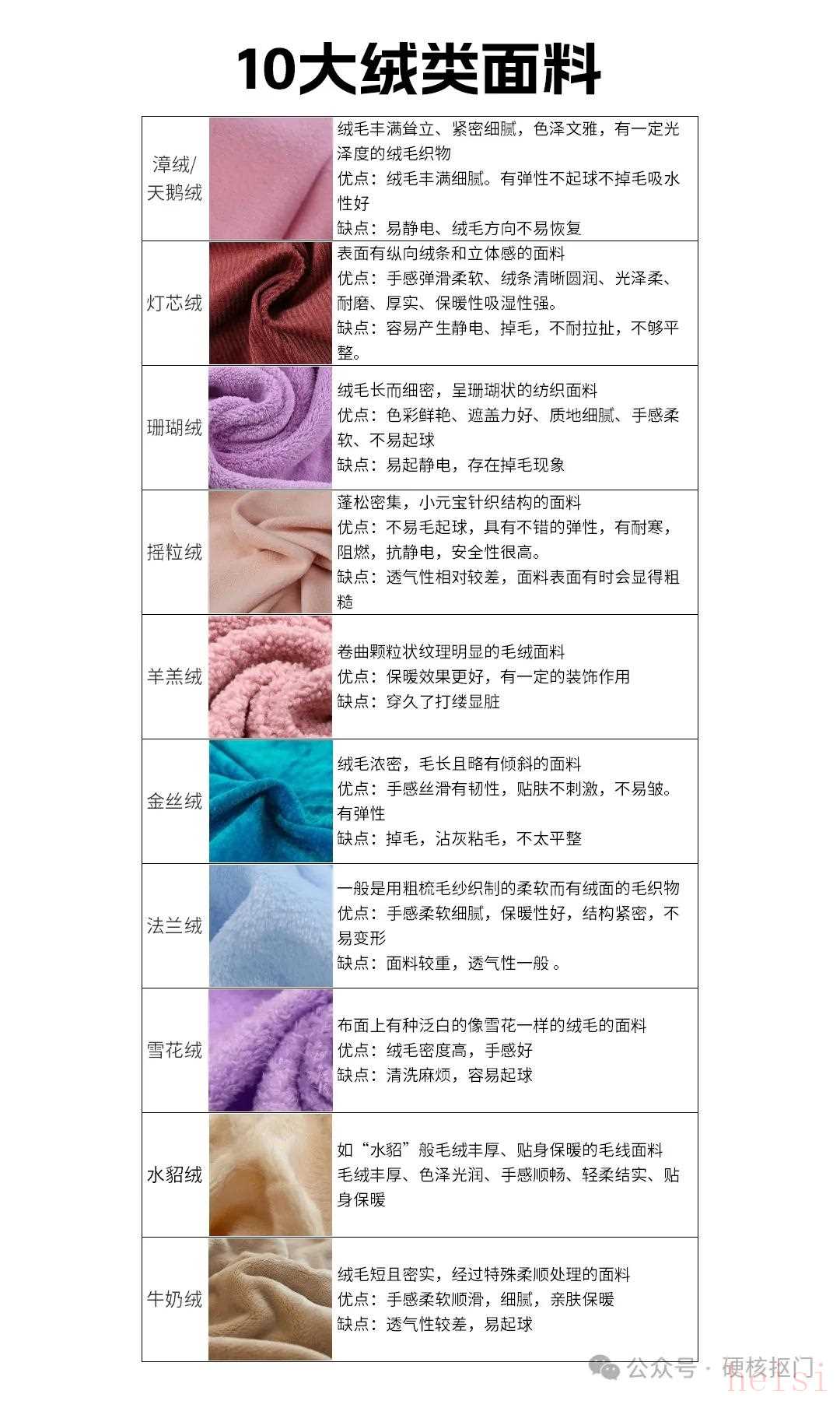 絨類面料參考這張,其實大部分也算針織面料,基本都是聚酯纖維做的