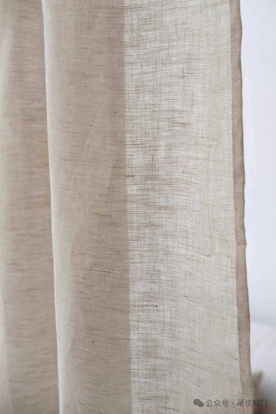 天然麻面料對著光看橫豎都有不均勻的纖維和麻結(jié),而且一捏就容易褶皺