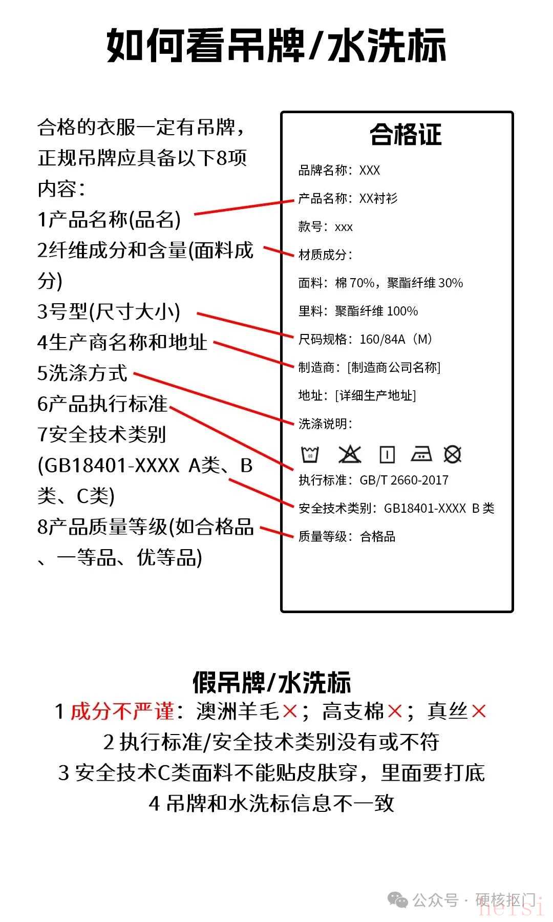 這是最直接、最官方的信息來源。每件衣服背后或內(nèi)側(cè)都附有面料標(biāo)簽,通常包含以下關(guān)鍵信息: