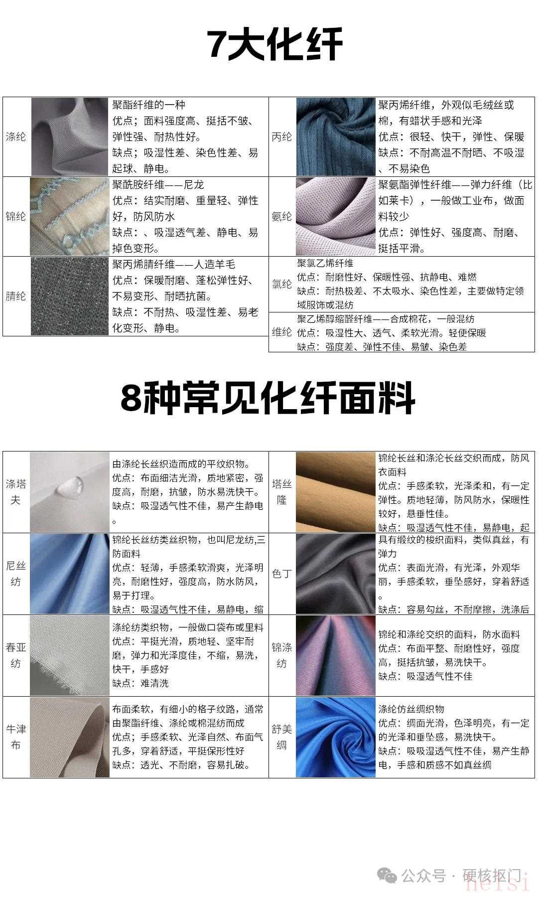 看品牌/模特圖/評論區(qū)都可能有坑,買回來款式不符很難扯皮,商家靠這個收割了多少大冤種。但面料是什么就是什么,造假直接就是實錘,申訴退款一告一個準(zhǔn),甚至送檢證實還能給你退一賠三,店鋪也會罰款扣分(所以敢標(biāo)假的其實不多)還有一些實體店推銷的時候張口亂說面料,出門就不認(rèn),大家也可以自己學(xué)會看看1 常見面料