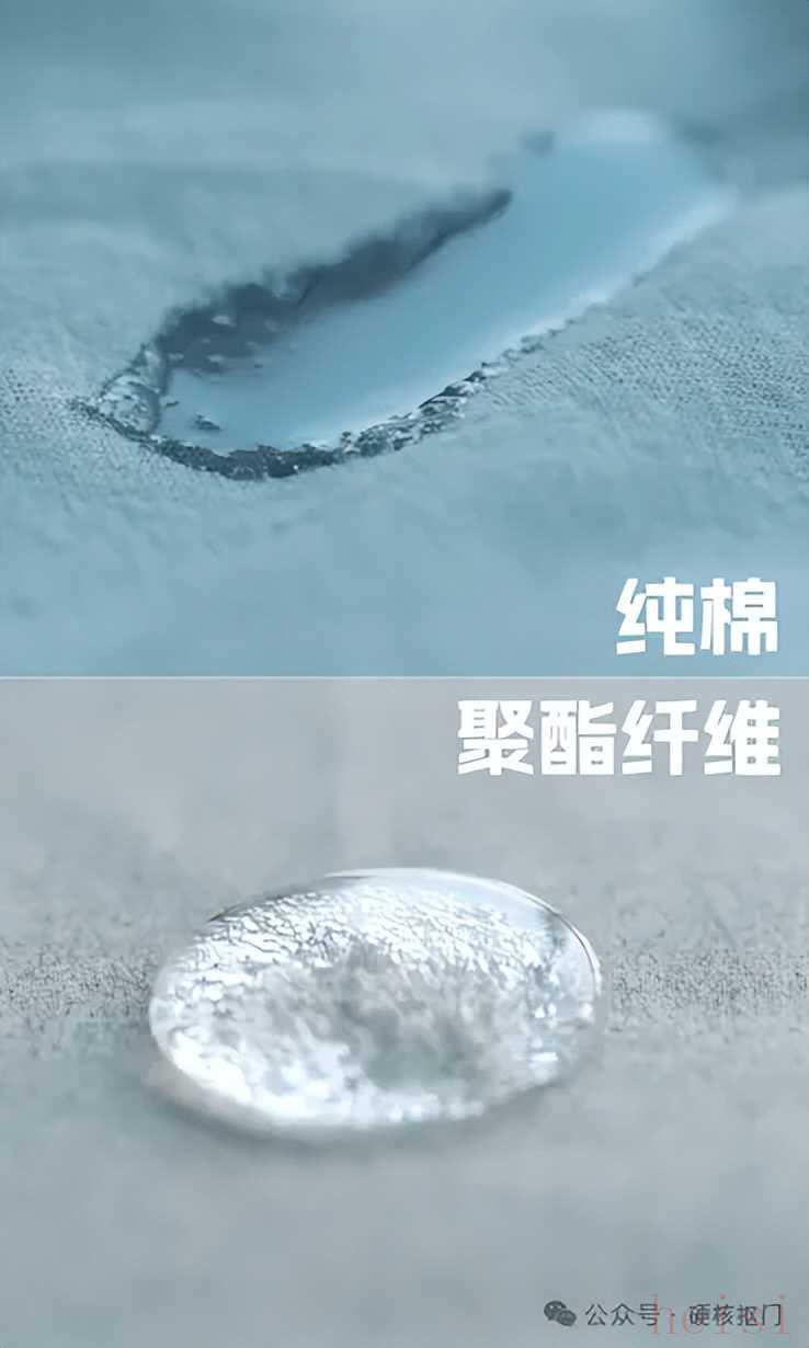 純棉摸起來比聚酯纖維更有阻力感,聚酯纖維更滑,而且明顯沒有純棉吸水。