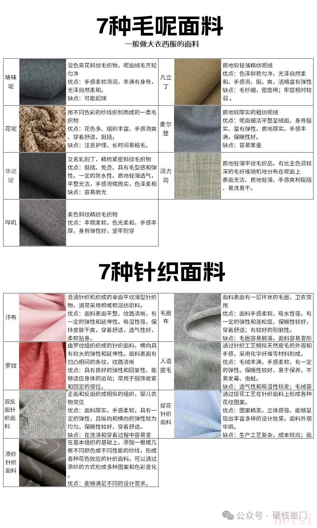 毛呢和針織面料參考這張,這些都特指工藝而不是材料,除了天然毛還有用棉或者化纖做的