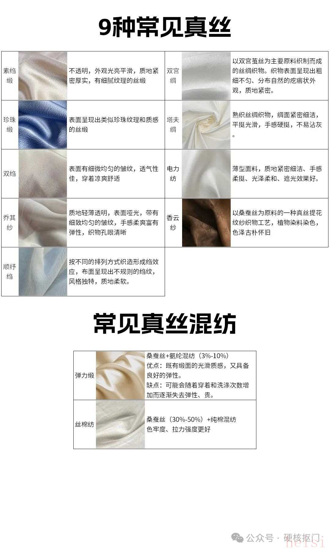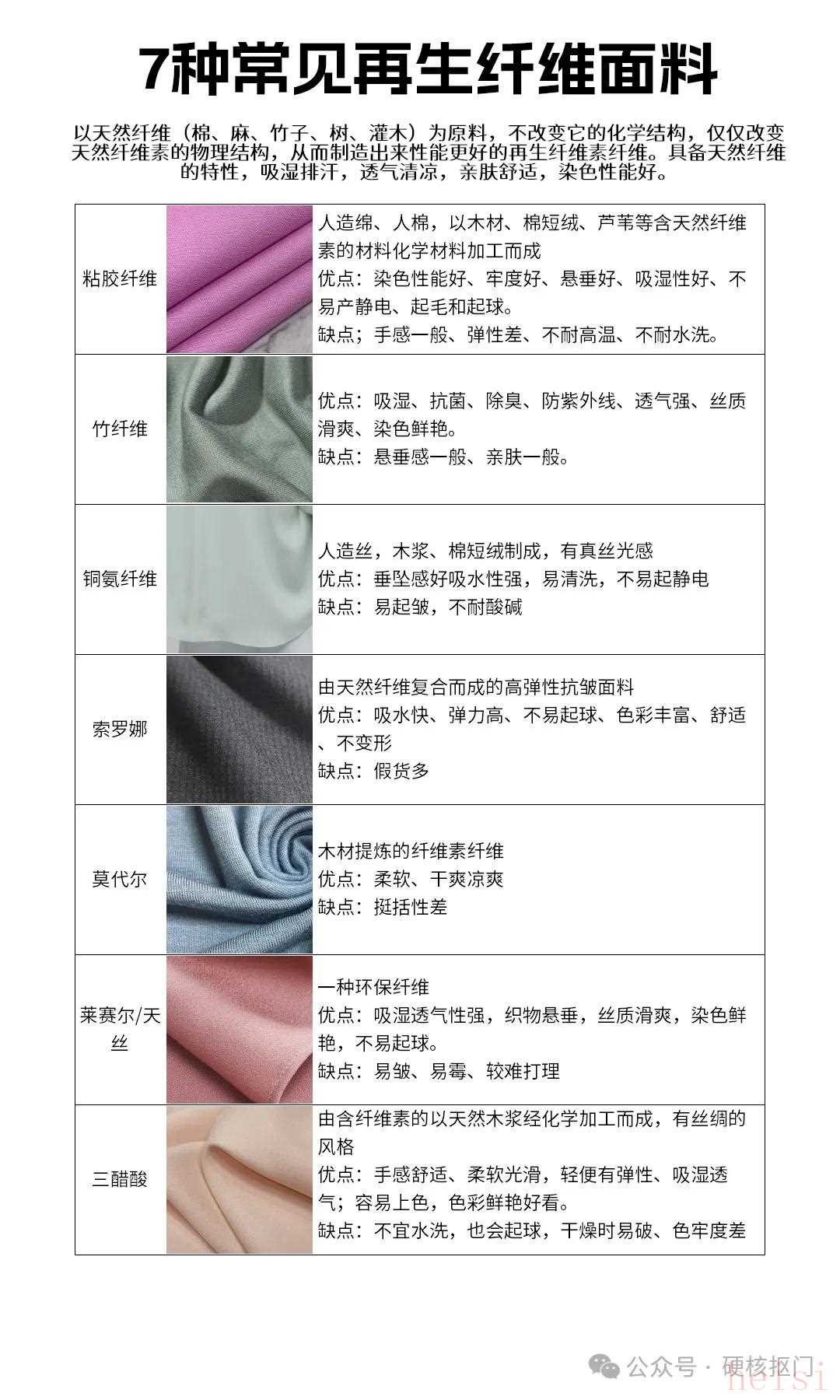 鑒別桑蠶絲可以摩擦面料,會有獨特的“絲鳴”現(xiàn)象常見再生纖維面料參考這張