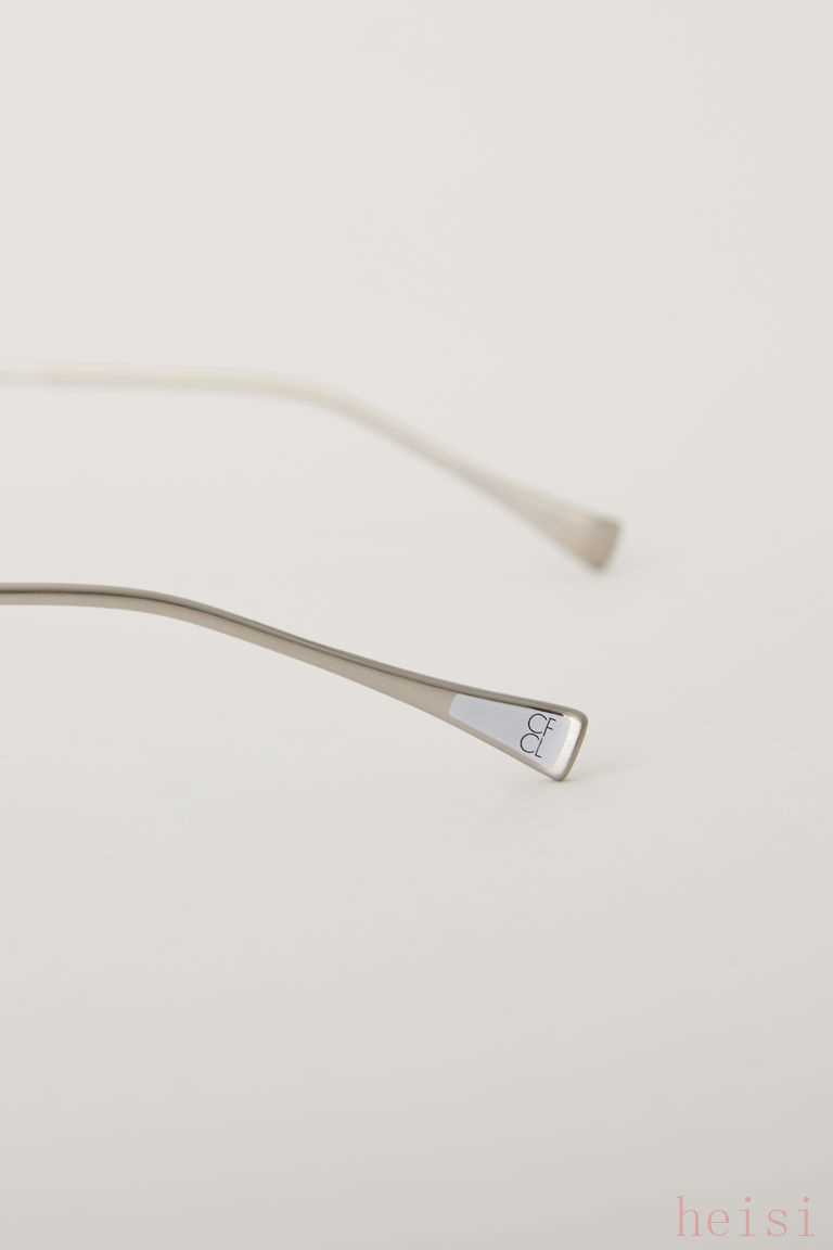 為呈現(xiàn)時(shí)尚簡(jiǎn)單的輪廓,眼鏡不采??托設(shè)計(jì),直接將眼鏡的中梁彎曲貼合?梁起到?撐?體效果,同時(shí),這也減少了所需要使?的零件數(shù)量,契合CFCL的可持續(xù)?標(biāo)。 999.9 通過標(biāo)志性特征“逆R型鉸鏈” (Gyaku-R hinge)盡最?限度消除太陽?與鏡腿之間的間隙,呈現(xiàn)出柔和的流線型姿態(tài)。流暢的單線條延續(xù)到鏡腳,銜接CFCL的標(biāo)志性?彩基調(diào)和專屬徽標(biāo),為造型增添?絲亮點(diǎn)。