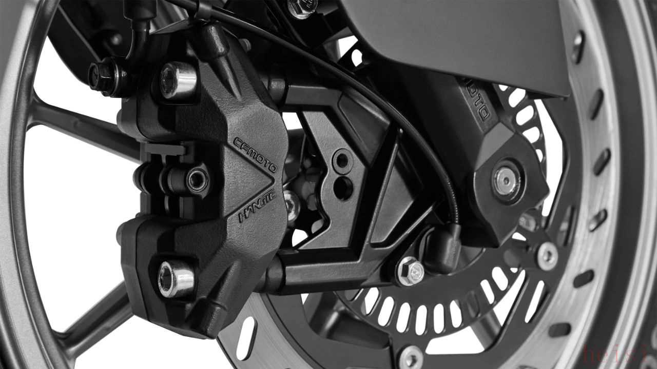 安全方面配備了前后單碟剎,標(biāo)配博世雙通道ABS,而且還有邊撐熄火,不過這里應(yīng)該叫邊撐斷電。