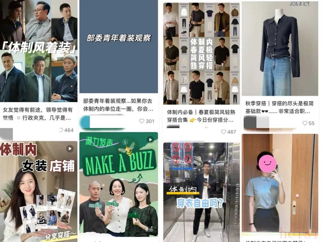 社媒上有關(guān)體制內(nèi)穿搭與運(yùn)動(dòng)品牌的內(nèi)容??