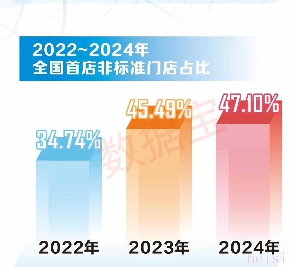 從分類上看,過(guò)去三年,相較于“地理”層面的首店,“場(chǎng)景、業(yè)態(tài)、體驗(yàn)”層面的非標(biāo)準(zhǔn)首店,獲得了更為廣闊的成長(zhǎng)空間。據(jù)贏商大數(shù)據(jù)不完全統(tǒng)計(jì),2024年全國(guó)74座城市新開(kāi)首店合計(jì)逾7000家,較2022年、2023年分別增長(zhǎng)79.12%、36.18%。非標(biāo)準(zhǔn)首店數(shù)量持續(xù)上升,2024年非標(biāo)準(zhǔn)首店較2022年增長(zhǎng)76.31%;全國(guó)首店中,非標(biāo)準(zhǔn)首店占比由2022年的34.74%一路上升至2024年的47.10%,增長(zhǎng)超12個(gè)百分點(diǎn)。