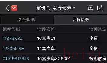 隨后,其還發(fā)行了公司債16富貴鳥SCP001(代碼011698173)4億元,16富貴01(代碼118797)13億元。