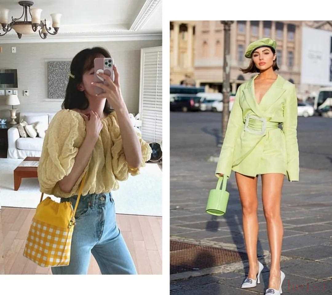 綠色和黃色是夏天的代表色,清新怡人,格紋挎包顯得俏皮可愛,手提包氣質(zhì)高級優(yōu)雅。
