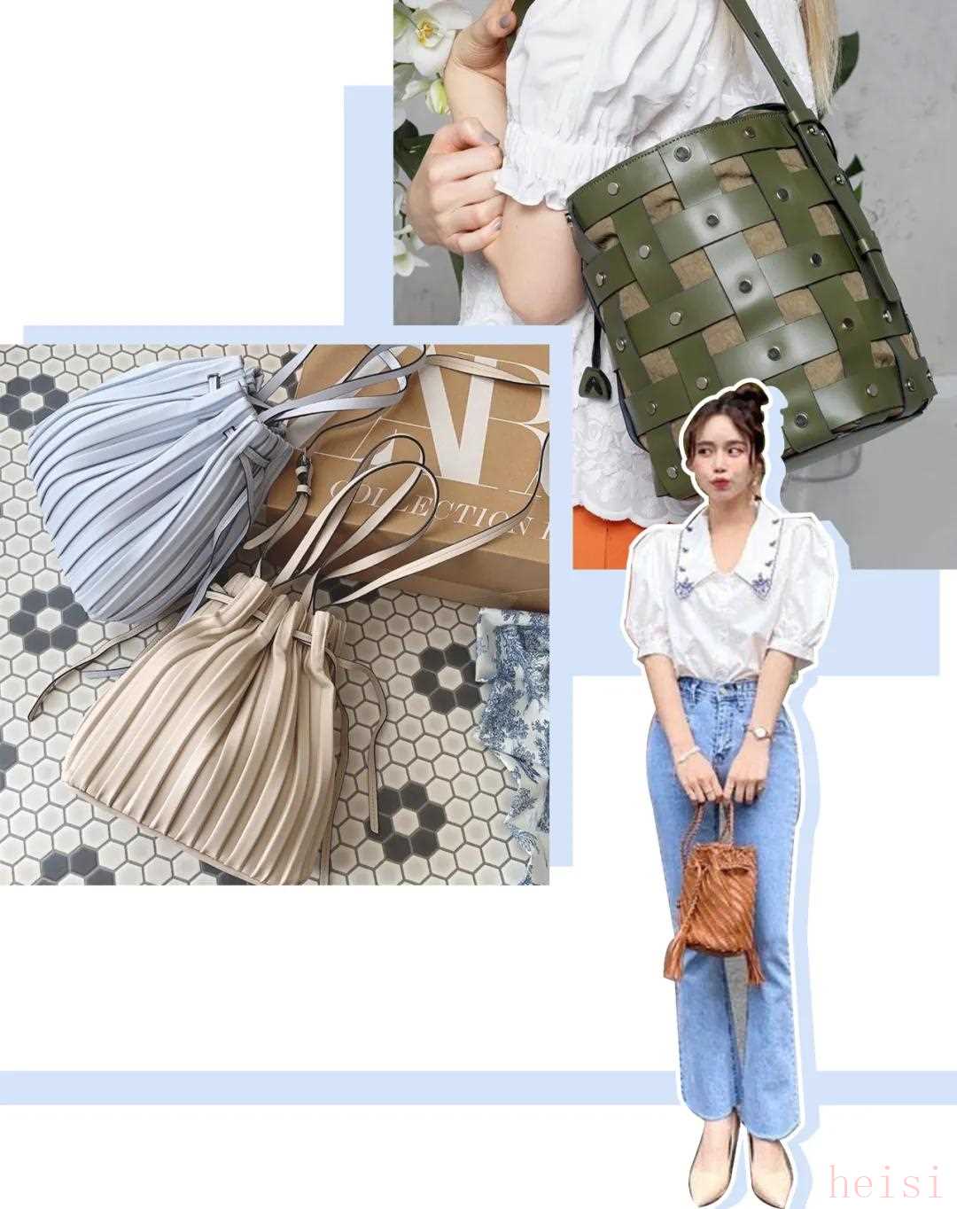 水桶包可謂是近幾年時尚圈的寵兒,種類繁多,日常中最常見的就是直筒型和抽繩款了。