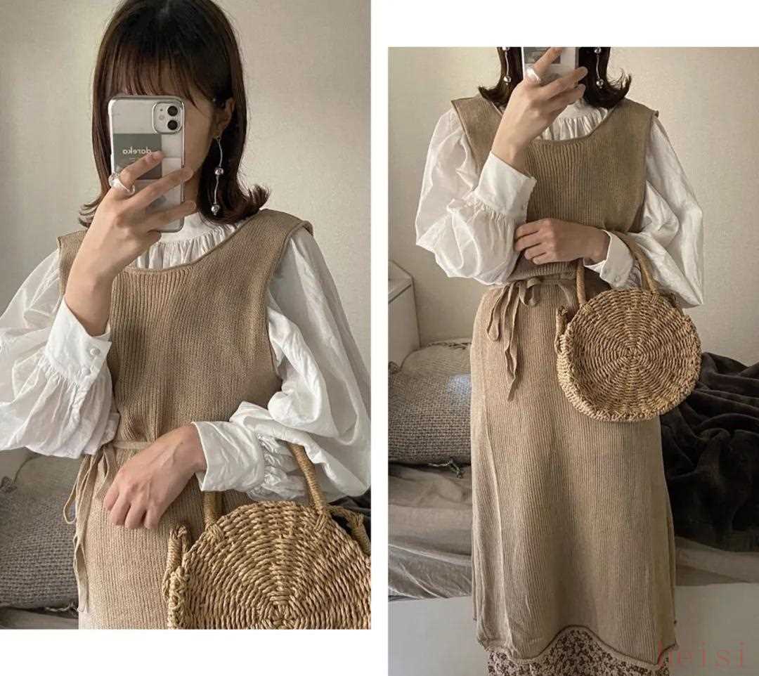 圓餅型的編織小挎包,也超有森系文藝的感jio,match上同色系的穿搭,仿佛是居住在森林里的小精靈。