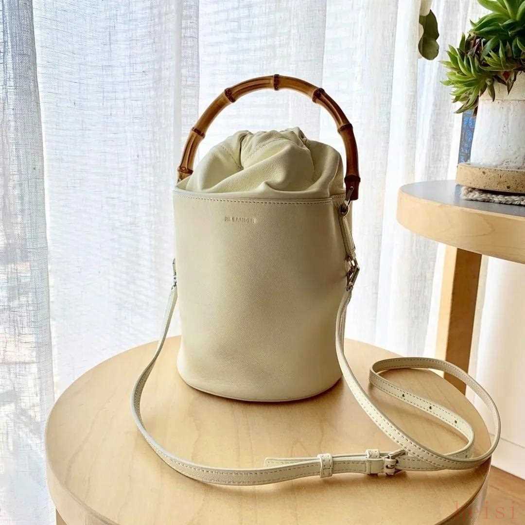 竹節(jié)手柄的手提水桶包超適合夏天!再配上一根包帶,一包多用搭配不同的look。
