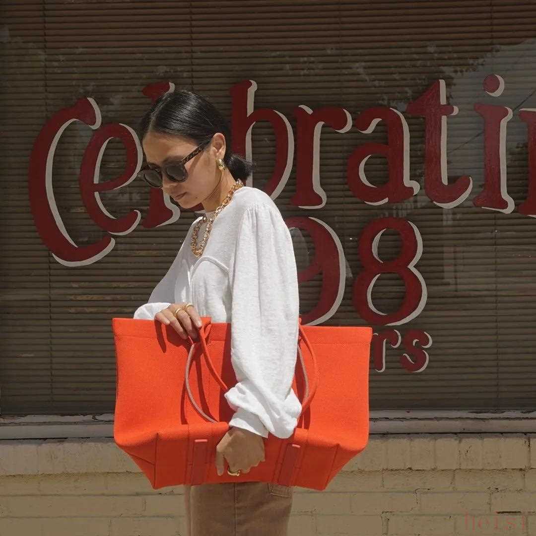 但是在夏天背傳統(tǒng)的深色皮質(zhì)的Tote bags未免有些過于沉重了。