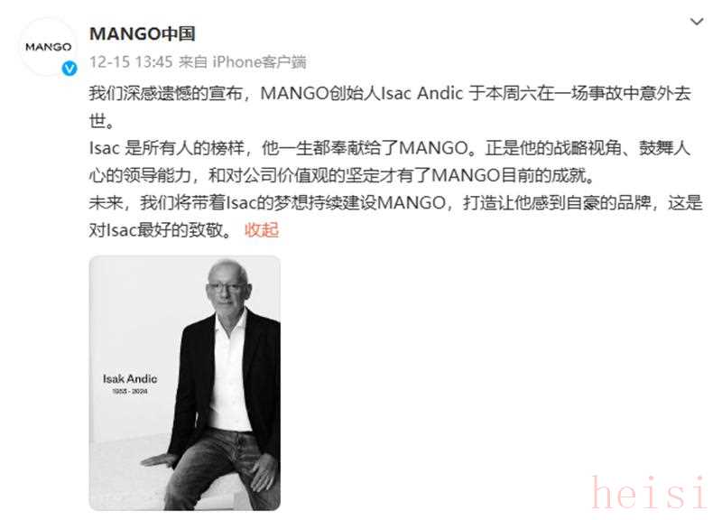 "事件核心:" 西班牙著名快時尚品牌“芒果”(Mango)的創(chuàng)始人胡安·