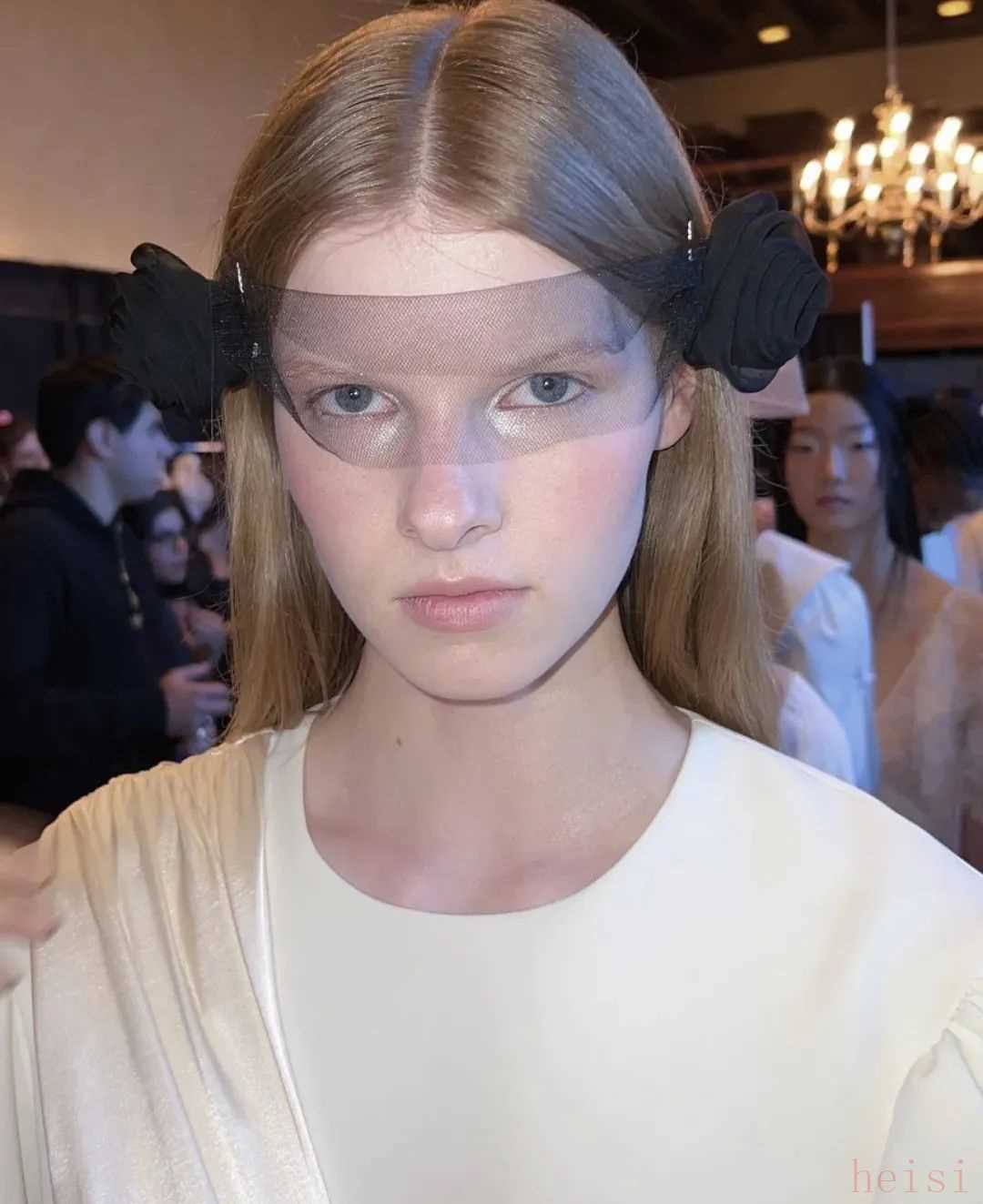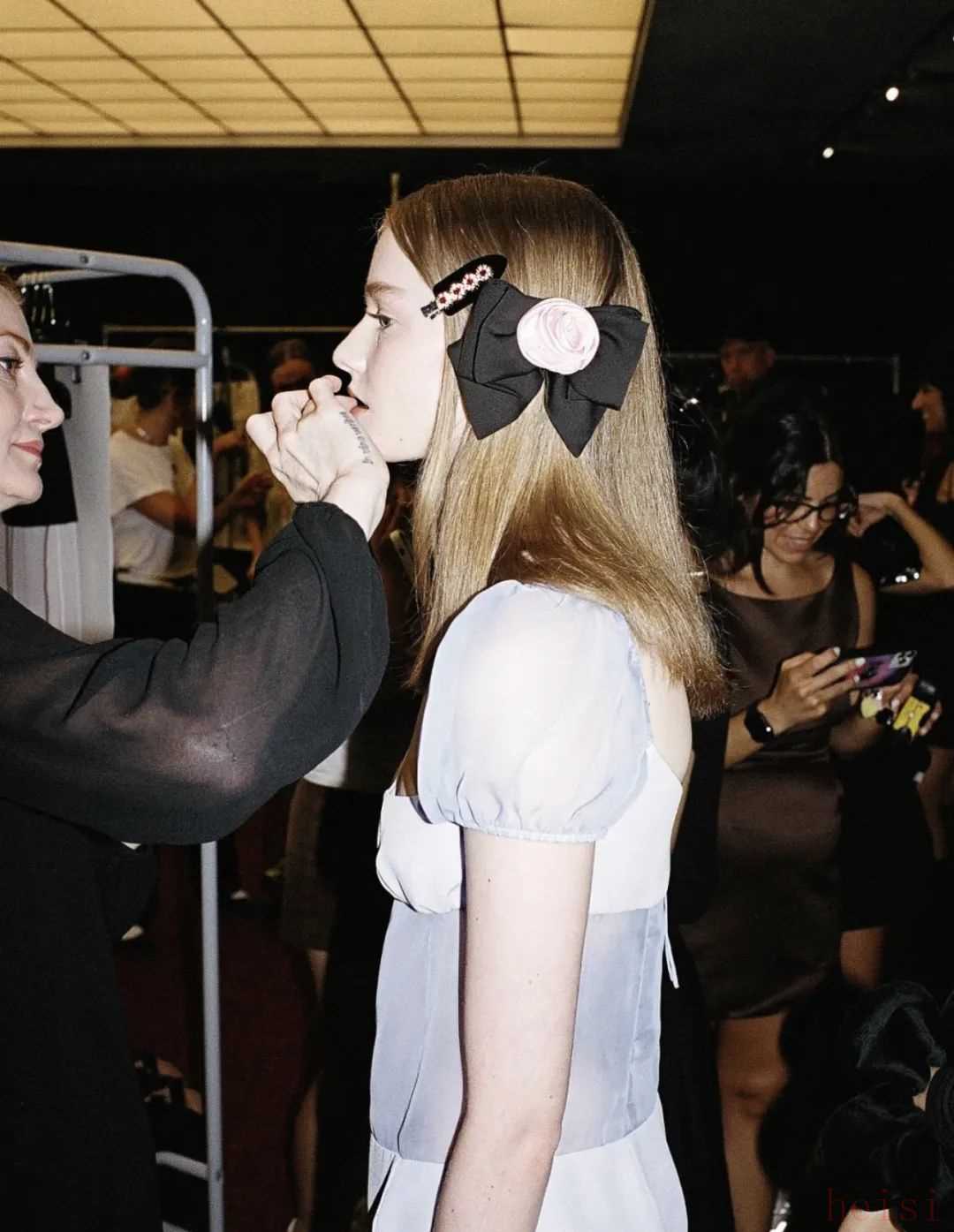 今年把花朵發(fā)飾做出圈的選手,不能少了Sandy Liang。秀場少女穿上如夢(mèng)似幻的糖果色造型,綁著花朵發(fā)飾款款走來,童年的浪漫幻想在此刻全部實(shí)現(xiàn)。