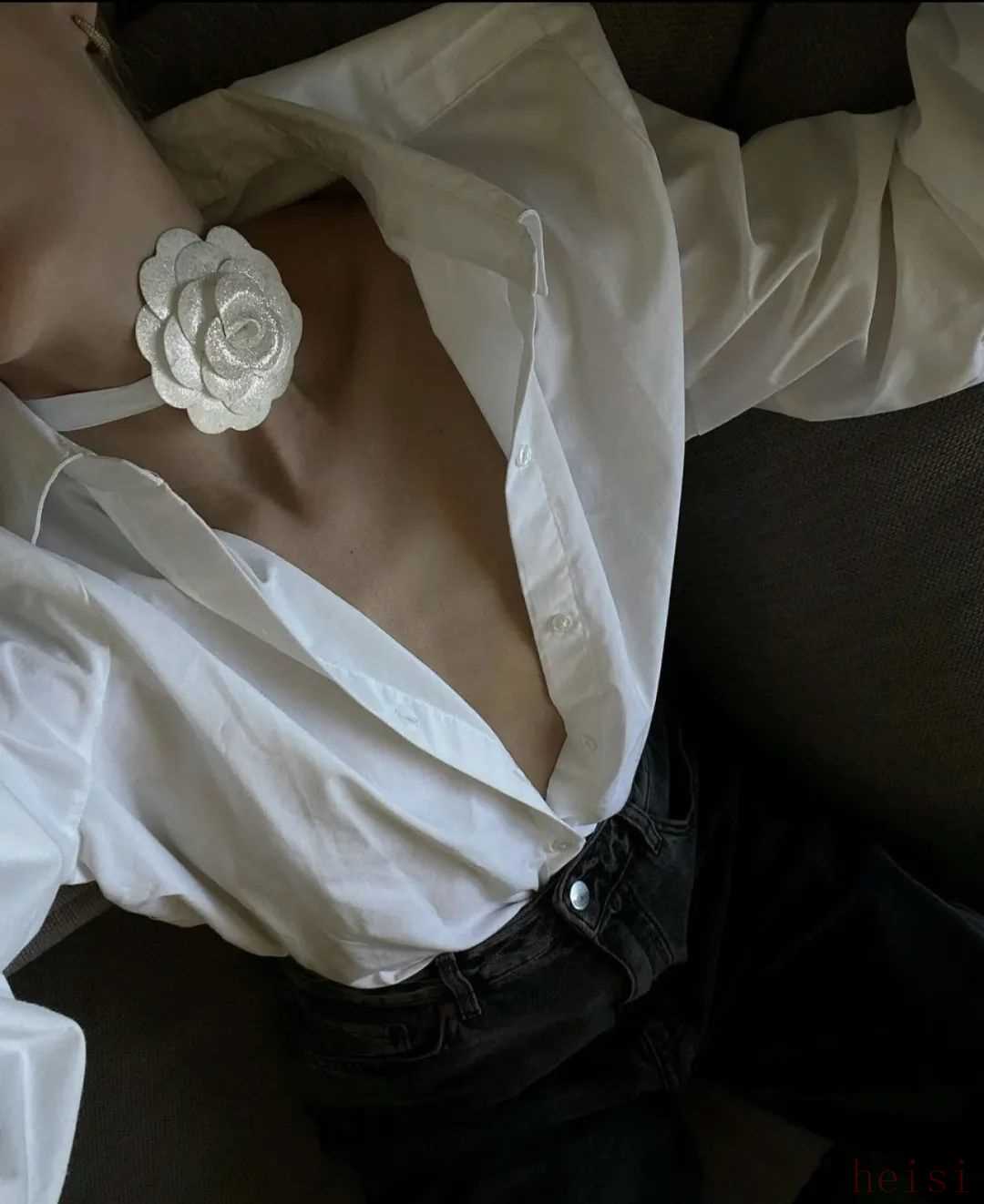 通勤女孩脫不下的襯衫、西服也和花朵choker是絕配,娘man平衡這事兒有了更具象的表達(dá)。