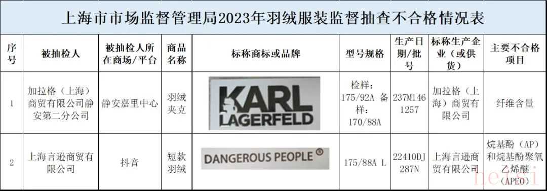 1月2日,上海市市場監(jiān)管局通告2批次監(jiān)督抽查不合格羽絨服產(chǎn)品,其中,上海言遜商貿(mào)有限公司在抖音銷售的標(biāo)稱由其生產(chǎn)(或供貨)的“DANGEROUS PEOPLE”牌短款羽絨(型號規(guī)格:175/88A L;貨號:22410DJ287N),填充物壬基酚+辛基酚+壬基酚聚氧乙烯醚+辛基酚聚氧乙烯醚實測為234.41mg/kg(標(biāo)準(zhǔn)值應(yīng)<100mg/kg),與標(biāo)準(zhǔn)要求不符。