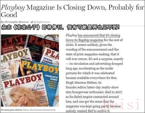 是的,因為新冠肺炎疫情影響,“對《花花公子》的內(nèi)容生產(chǎn)和供應(yīng)鏈造成破壞”,這本有著半個世紀(jì)歷史的美國成人雜志品牌倉促宣布:2020年的春季刊將成為《花花公子》最后一本紙質(zhì)雜志。