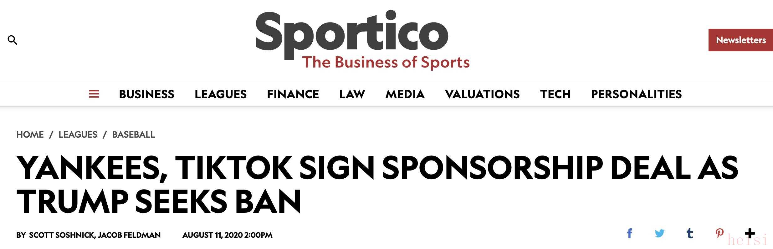 根據(jù)多家美國媒體(包括紐約時報、ESPN等)的報道,紐約洋基隊(New York Yankees)已經(jīng)與短視頻平臺TikTok簽署了一項贊助協(xié)議。
