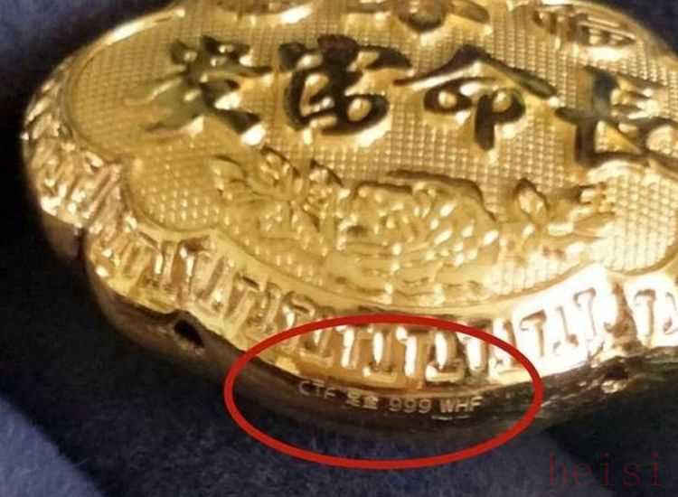 999黃金制作的首飾,帶有“千足金”、“AU999”或“G999”的鋼??;9999黃金的金條上帶有“AU9999”、“足金9999”或“萬(wàn)足金”的鋼印。