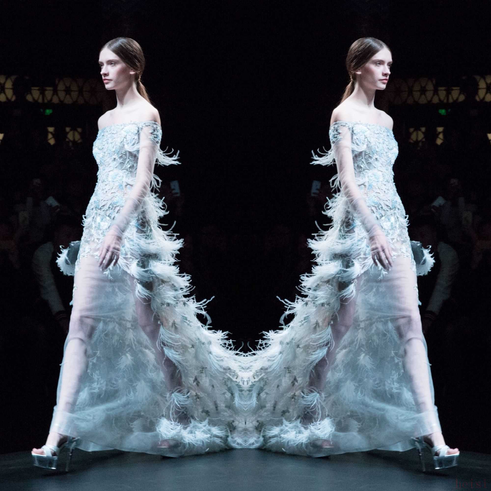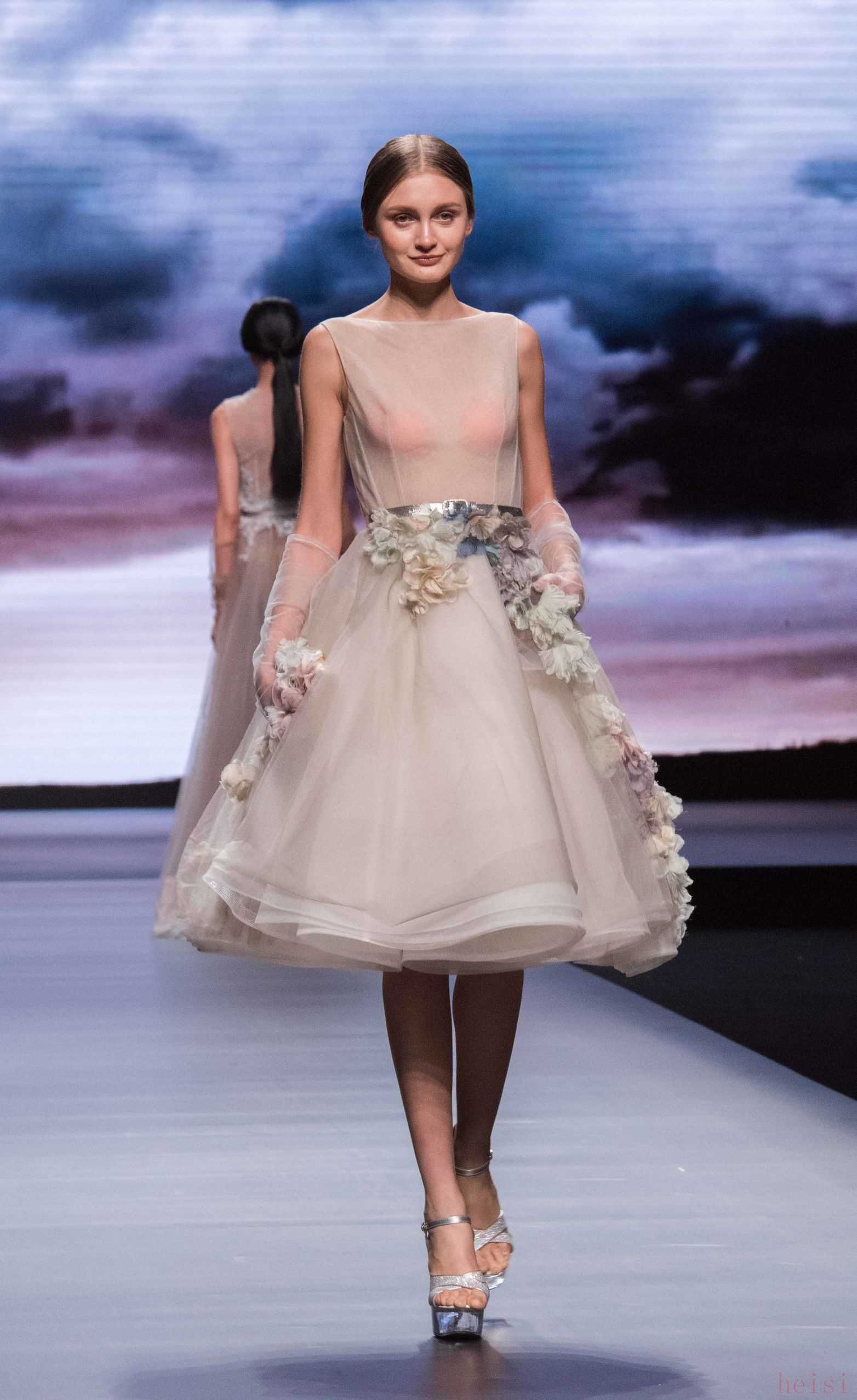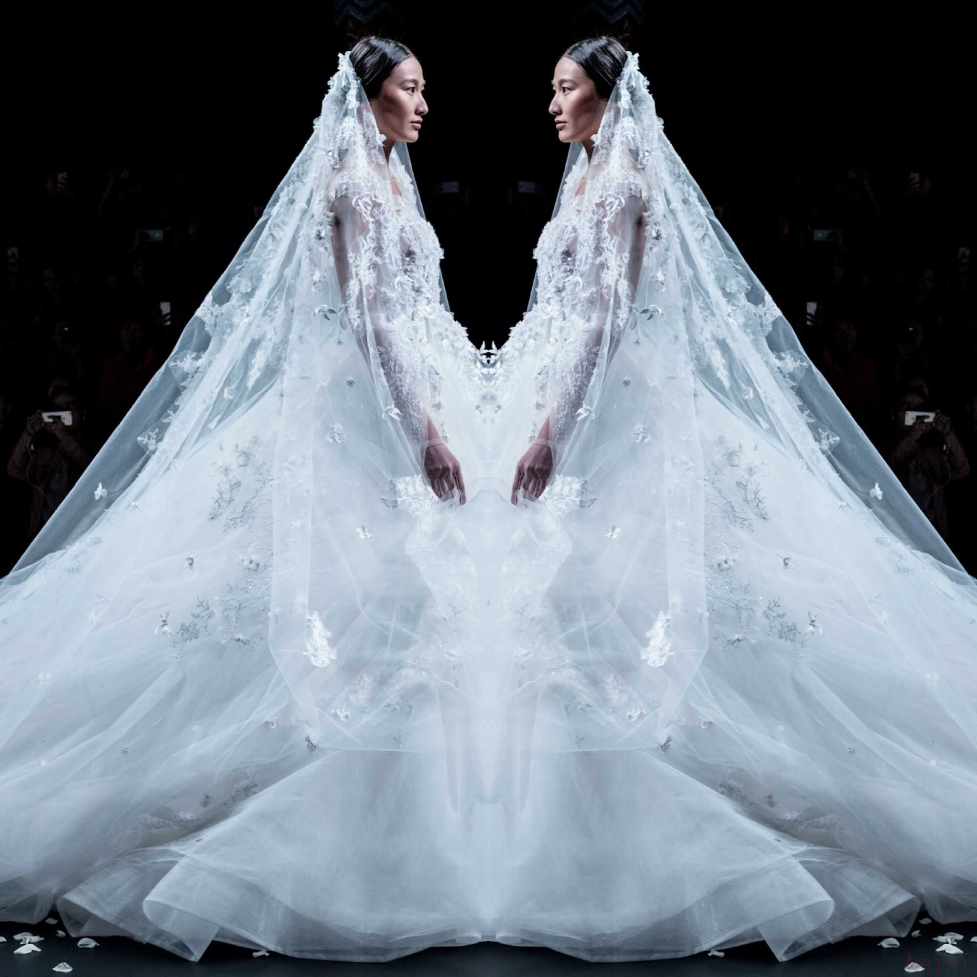 壓軸的AM.IXAM婚紗,糅合優(yōu)美與感性,將女性成為新娘之時(shí)的嬌柔、嫵媚、羞怯、憧憬等等復(fù)雜纏結(jié)的心情,全部傾注于設(shè)計(jì)剪裁之中,使得作品本身富含內(nèi)蘊(yùn),散發(fā)華麗的、令人陶醉的美艷氣息。AM.IXAM以精致綻放優(yōu)雅,渴望帶人走入吐納芬芳的境地,體驗(yàn)蝶戀花般純粹、明凈的愛。