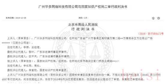 北京市高級(jí)人民法院12月17日作出的二審行政判決書((2019)京行終8473號(hào))顯示,上訴人廣州華多網(wǎng)絡(luò)科技有限公司因商標(biāo)申請(qǐng)駁回復(fù)審行政糾紛一案,不服北京知識(shí)產(chǎn)權(quán)法院(2019)京73行初4897號(hào)行政判決,向法院提起上訴。