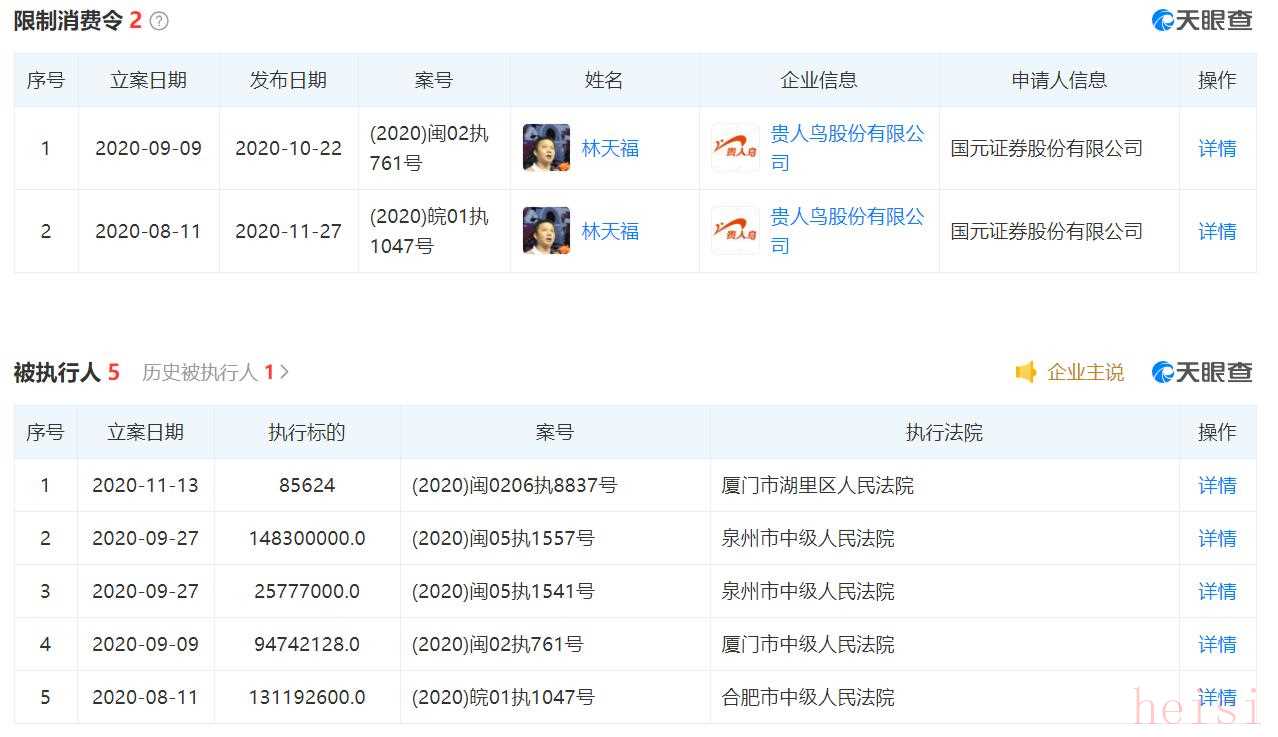 貴人鳥及創(chuàng)始人再收限制消費(fèi)令,累計執(zhí)行標(biāo)的超4億元