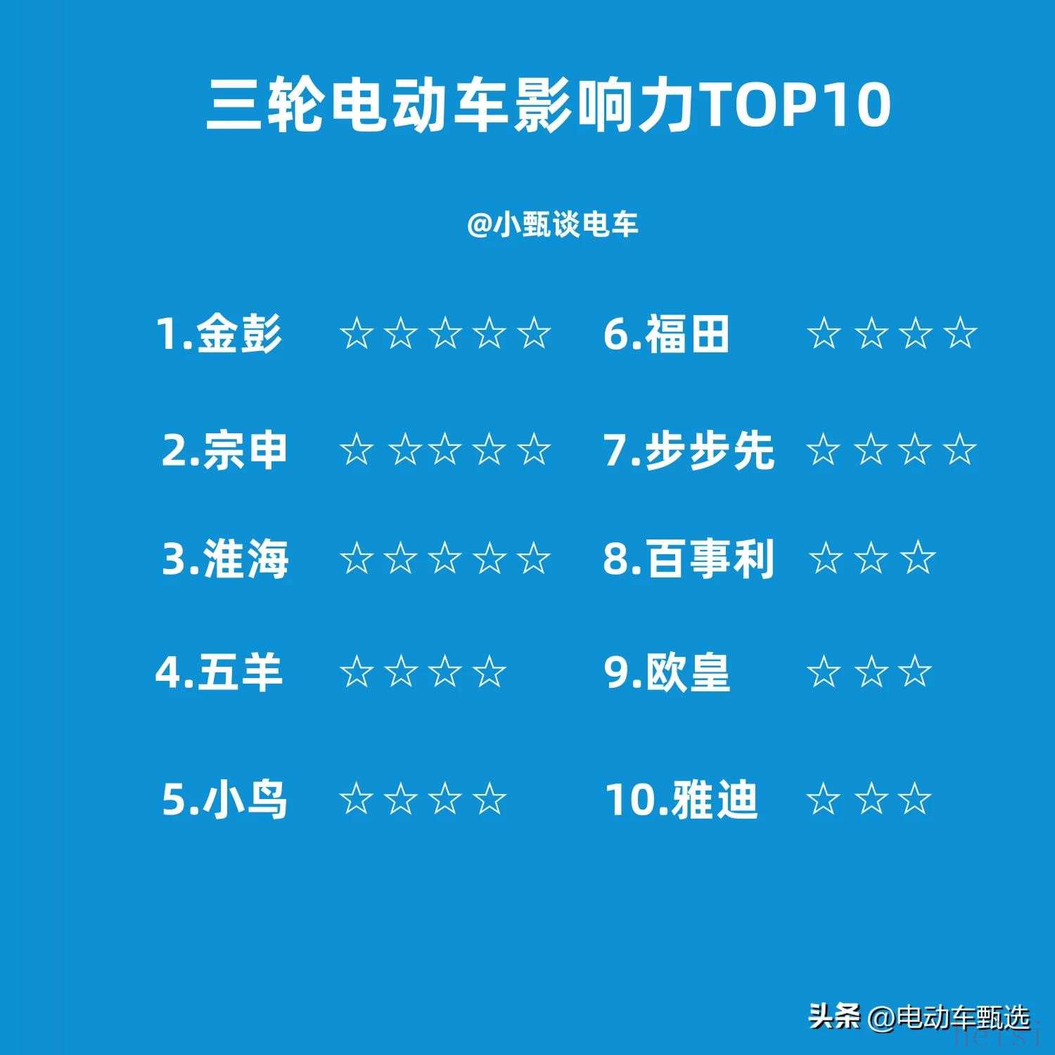 以上就是兩輪、三輪和四輪電動車影響力TOP10,其中個別可能與實際有所差異,但整體上就是如此。對于未來想要買電動車的可以收藏起來,到時候做個參考。