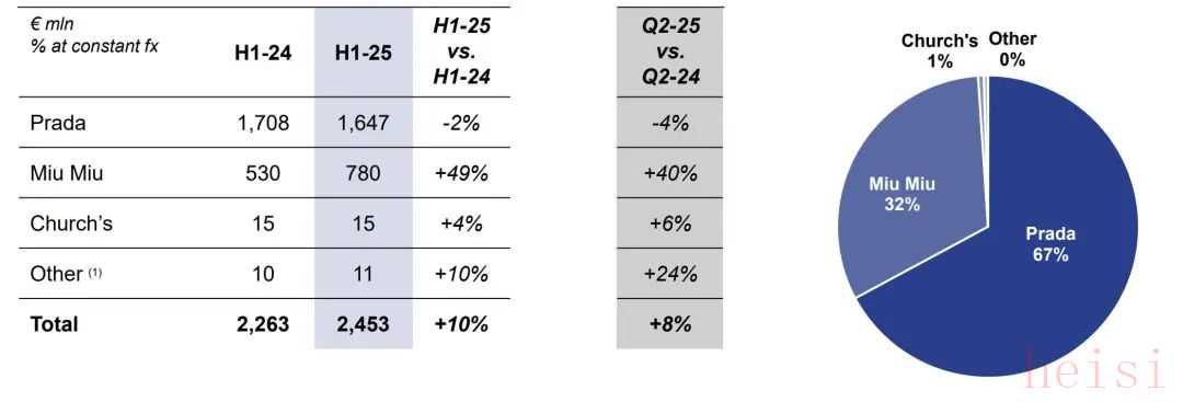 所有地區(qū)均錄得增長。集團在亞太市場上半年增長10%,但Prada品牌在中國市場第二季度表現(xiàn)較第一季度略弱,業(yè)績承壓。美洲市場在本地消費者和旅游復(fù)蘇帶動下同比增長12%,歐洲市場增長9%,日本市場增長4%,中東市場繼續(xù)領(lǐng)跑,增幅高達26%。