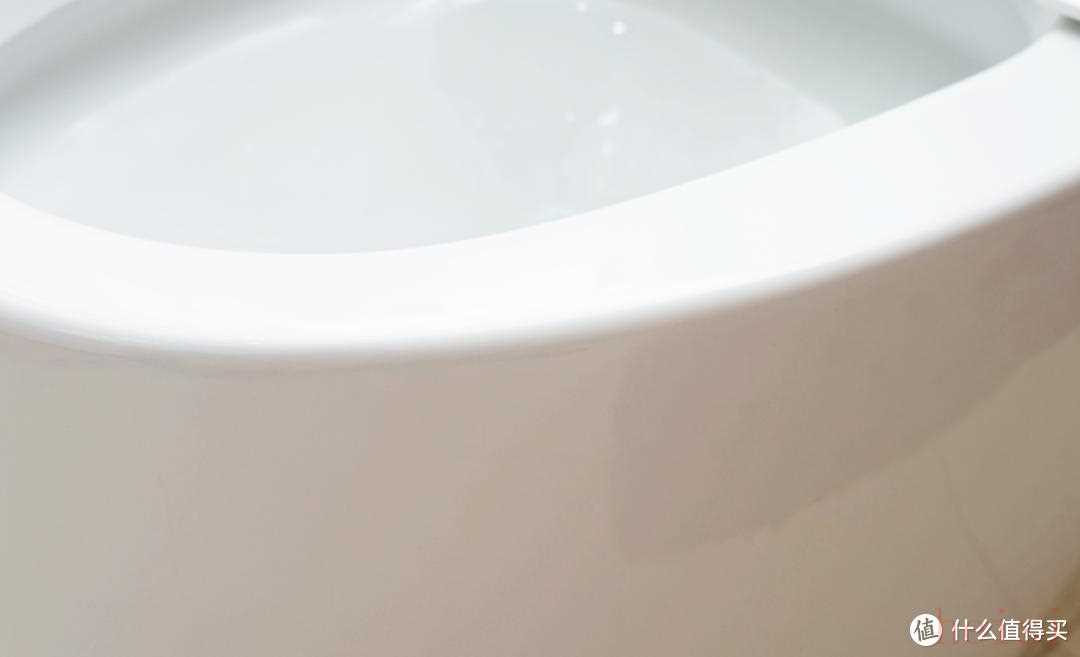 這款坑距305mm,由于是無儲(chǔ)水箱的一體式馬桶,安裝后整個(gè)視覺非常清爽。表層是光滑的微晶抗污釉面,平時(shí)使用時(shí)外層不容易掛污,內(nèi)壁也更容易沖刷干凈。