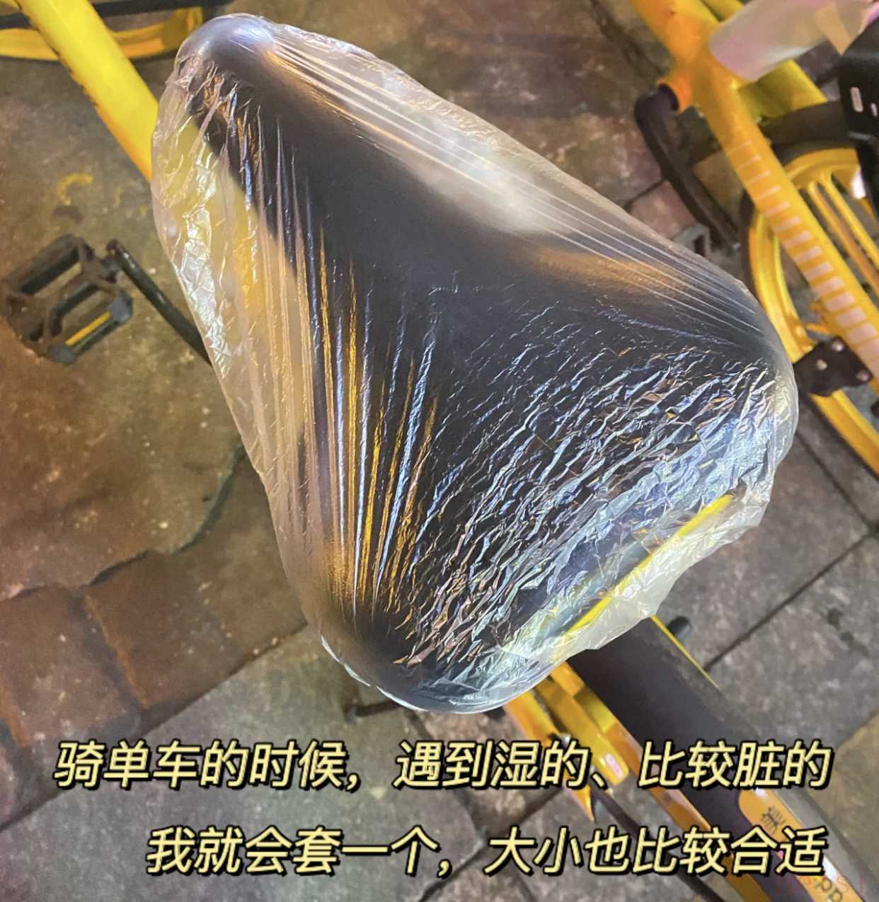 有時(shí)候出行,需要騎電動(dòng)車或者共享單車,遇到下雨或者風(fēng)沙天,單車的車座上就會(huì)又臟又濕,一般這時(shí)候我媽媽就會(huì)給套一個(gè)“浴帽”,大小竟然也非常合適。