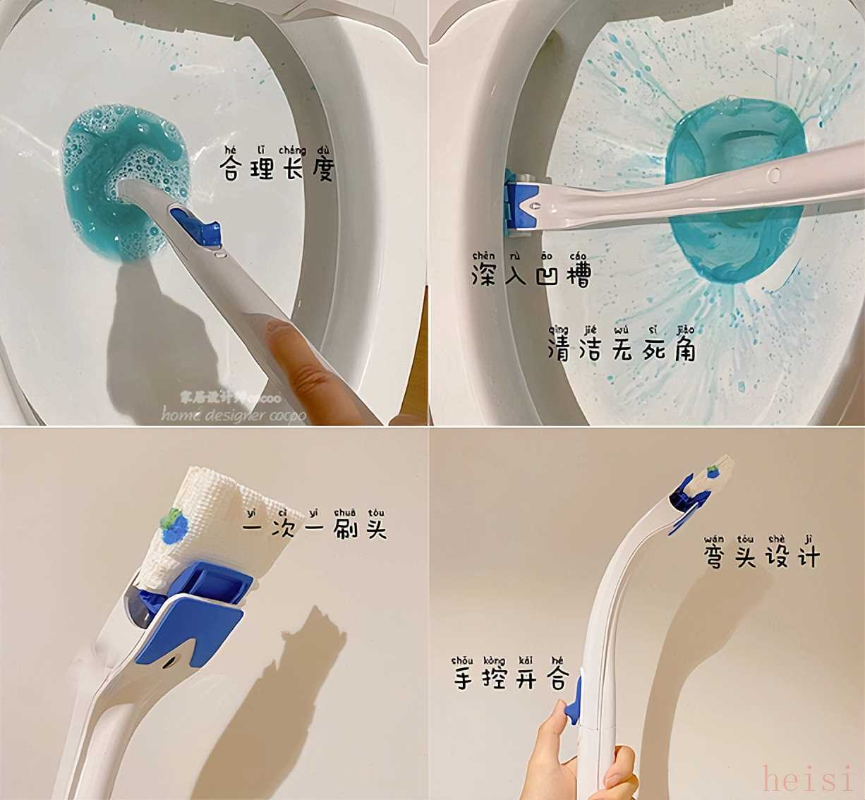 而一次性馬桶刷,就徹底了解決了這個(gè)難題,它小巧不占用空間,刷頭是一次性的,自帶清潔液,彎頭的設(shè)計(jì)可以清潔到馬桶的各個(gè)角落,不留死角,輸完以后直接把刷頭扔進(jìn)馬桶里,沖走即可。