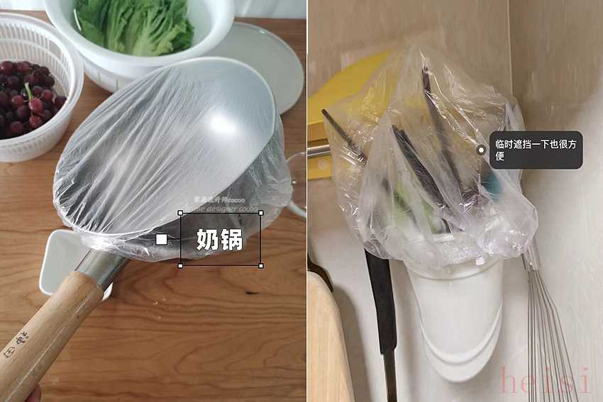 家里不常用的鍋?zhàn)?/span>,或者不常用的餐具,都可以用這個(gè)“浴帽”包起來,然后收納起來,下次用的時(shí)候就不用再費(fèi)勁地去清理的。