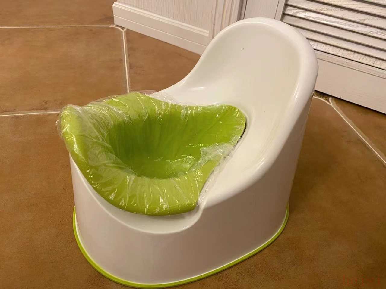 如果用這個(gè)“浴帽”把寶寶小馬桶的“底盆”包起來,每次寶寶上完廁所,直接把“浴帽”扔了就可以,不用再去給寶寶馬桶消毒清理了。