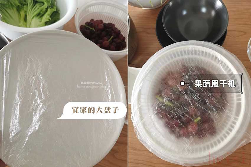 把這個(gè)“浴帽”打開,就可以套到各種盤子上作為保鮮膜使用,保鮮水果或者蔬菜效果絲毫不比保鮮膜差。