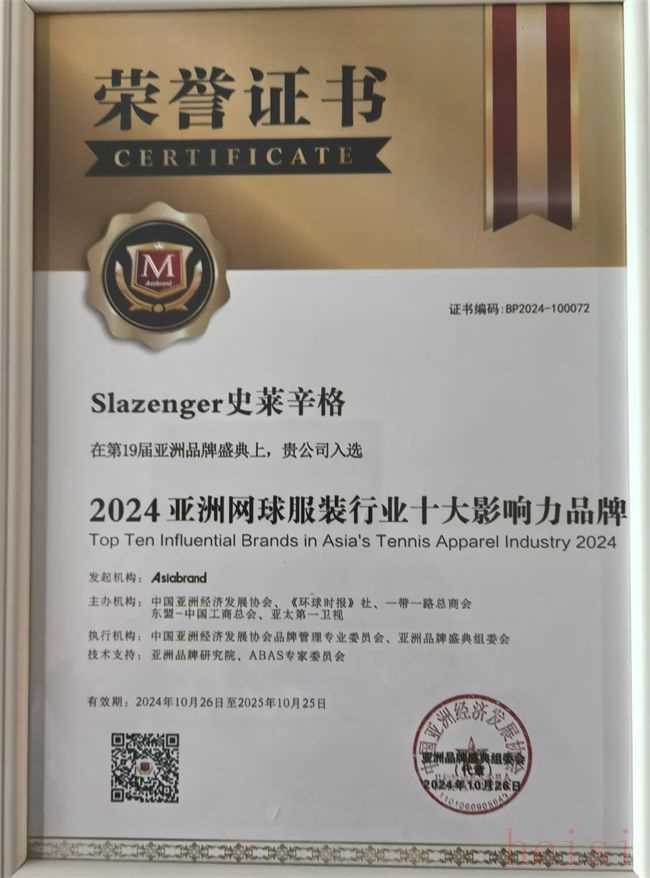 史萊辛格的成功并非一蹴而就。自品牌創(chuàng)立以來(lái),Slazenger史萊辛格始終堅(jiān)持以創(chuàng)新和品質(zhì)為核心,不斷提升產(chǎn)品的設(shè)計(jì)感和功能性。入選“2024亞洲品牌500強(qiáng)”更是對(duì)史萊辛格綜合實(shí)力的一次全面展示。這一榜單匯集了亞洲各地前沿品牌,涵蓋了從傳統(tǒng)制造業(yè)到現(xiàn)代服務(wù)業(yè)的廣泛領(lǐng)域。史萊辛格能夠在眾多品牌中脫穎而出,證明了其在品牌建設(shè)、市場(chǎng)拓展、創(chuàng)新能力等方面的卓越成就。