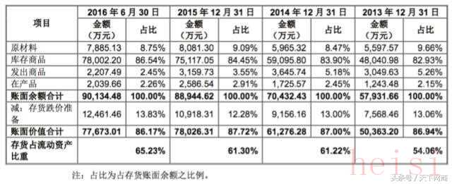 本公司存貨各項(xiàng)目賬面余額及其占比