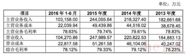 招股書顯示,2016年1-6月直營(yíng)店總收入為9.16億元,占總收入八成。2016年上半年,公司主營(yíng)業(yè)務(wù)毛利率為78.63%,相對(duì)較穩(wěn)定,且處于行業(yè)中上水平。